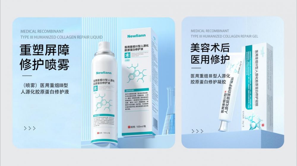 (2)医用美护器械是纽利安另一重要板块,主打专业修护与肌肤问题干预。产品包括医用透明质酸钠皮肤修护液、多款重组人源化胶原蛋白修护贴及修复液,以及医用硅酮疤痕护理系列等。该类产品突出“械字号”的专业背书,瞄准术后修复、敏感肌护理、疤痕淡化等具体需求。