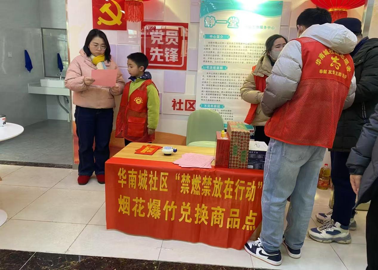 为进一步认真贯彻落实《合肥市燃放烟花爆竹管理规定》,社区在活动现场专门设立了华南城社区 “禁燃禁放在行动” 烟花爆竹兑换商品点。燃放烟花曾是许多人庆祝节日的方式之一,但随着时代发展,烟花燃放带来的环境污染、安全隐患等问题日益凸显。社区此举旨在扎实做好烟花爆竹禁售禁燃禁放工作,增强居民的环境保护意识,共同建设美好家园。活动现场,工作人员积极向居民宣传禁燃禁放政策,耐心讲解燃放烟花爆竹对环境和安全的危害。不少居民主动将家中存放的烟花爆竹带到兑换点,换取生活日用品,用实际行动支持绿色过节,现场洋溢着理解与配合的和谐氛围。