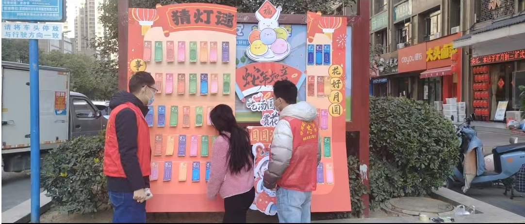 猜灯谜闹元宵,作为一项历史悠久、充满趣味的传统民俗活动,在这次元宵节中备受关注。活动当日,趣味盎然的谜语被精心张贴在社区一楼大门口,仿佛在向居民们发出热情的 “挑战书”。这别出心裁的布置,瞬间点燃了大家的好奇心,居民们纷纷赶来。有人三五成群一起商量,或聚精会神地冥思苦想,人群中不时爆发出欢呼声,处处洋溢着喜庆、欢乐、祥和的节日氛围。