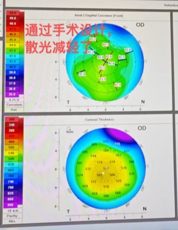 王女士术前检查显示右眼存在150°散光,若按常规方案需植入带散光矫正功能的ICL晶体。然而,张婉君院长在面诊时,凭借丰富的临床经验发现其散光轴位稳定且角膜形态特殊,提出创新方案:通过非散光晶体结合术中个性化设计,既能矫正散光又可节省费用。这一建议打破了“散光必用高价晶体”的固有思维,体现了张院长对手术指征的严谨把控与对患者经济负担的体谅。