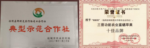 经过数年努力, 2023 年, 临猗县郇耕尧农作物专业合作社生产的苹果硒含量达到了 22 微克 / 千克。凭借发展功能水果产业, 助力乡村振兴战略,赋能健康中国建设,“郇耕尧”三晋功能农业富硒苹果亦被评为“十佳品牌”, 通过科技助力,真正地让富硒苹果变“金”果。